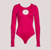Классическая основа боди дополнена игривым и деликатным вырезом на груди. Такой вырез не смущает, а очаровывает. Тенденция весны - небольшие вырезы на сборках. Удлиненный рукав на сборке - наш любимый элемент, который позволяет регулировать длину рукава и не сковывает движения.